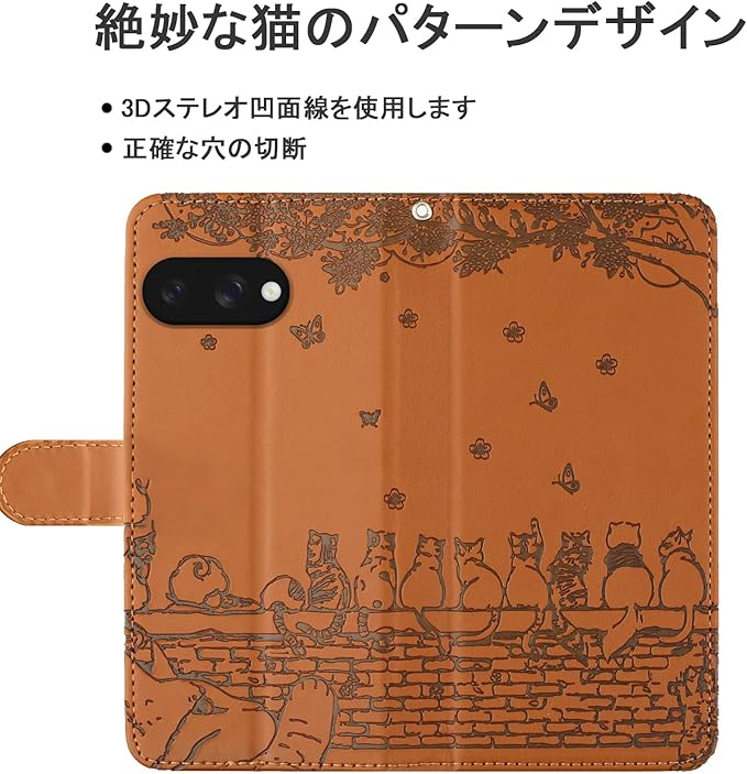 for google pixel 9a ケース 手帳型 pixel 9a スマホ ケース ぐーくるぴくせる9a グーグルピクセル9a カバー カード収納 ソフトTPUインナーシェル 精密カットアウト マルチカード収納 桜柄マグネット開閉式 キャッシュポケット 耐衝撃保護 調整可能 レベリングスタンド[茶色]