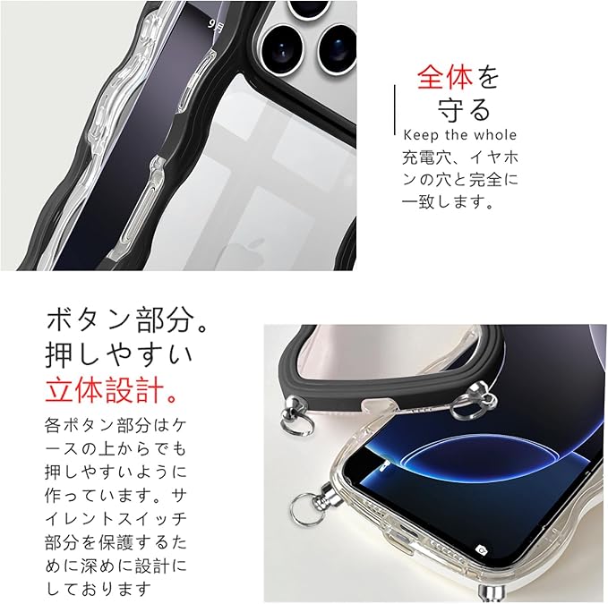 【フレキシブル&柔軟】 このTPU+PC製クロスボディケースは、スマートフォンをシリコーンでしっかりとホールドし。取り外しやすいのも特徴です、フレームのウェーブ部分は取り外し可能です。衝撃吸収もバッチリで滑りにくく、快適な操作性を提供します。