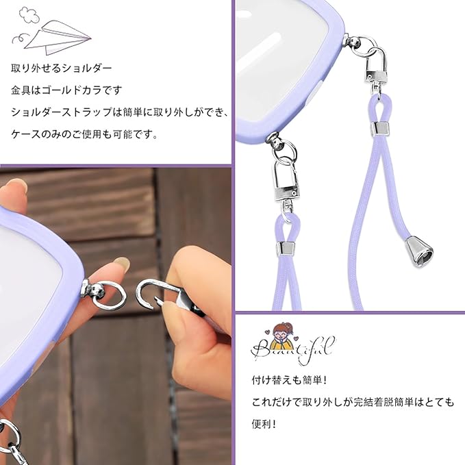 【使いやすさ・長さ調整可能】柔らかいナイロンストラップで首を快適に保ち、金属製のアジャスタブルエンドで、快適な長さに調整できます、手を自由に、ストラップの全長は1.3メートルです。ストラップを取り外して、電話ケースを単独で使用できます。