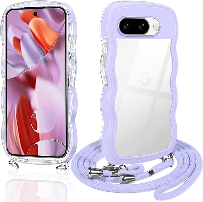 Google Pixel 9a 用の ケース クリア ショルダー グーグル ピクセル9a スマホケース 透明 TPU カバー ストラップ付き 肩掛け 首掛け 紐付き 斜めがけ 創意 個性 可愛い かわいい 韓国 耐衝撃(クローブ 紫)