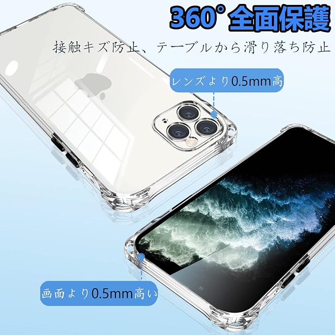 【カメラレンズ保護 & ディスプレイ保護】4つのバンパーには、背面に突起があります。iPhone11のカメラレンズより0.5ミリ高い立ち上がって、有効的に擦り傷を防ぎます。液晶画面より約0.5mm高く設計され地面と接触するのを防止、外部との擦り傷を避けるし、併用のガラスフィルムまでも保護できます。