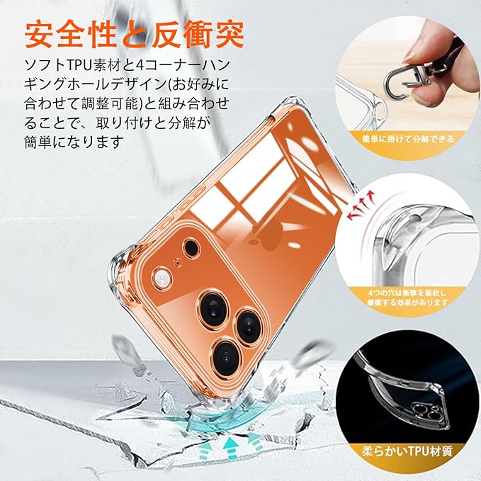 weiaoluo iPhone 17 pro max ケース クリア 用の にはリストストラップとネックストラップが付属します、調節可能なストラップにより、サイド、またはフロントに持ち運べるときに完璧にあなたの隣に掛けることができます。 高透明率の高い特殊なTPU素材を持ち、黄ばみも付きにくい。薄くて丈夫で柔軟性が高く、程よいグリップ感があり、本体の持つスリムさをできる限り損なわないよう設計しています。着脱も簡単で、スマホ本体への擦り傷も心配無用です。衝突や引っかき傷から電話を保護できます。ストラップは、一般的なストラップの1.5倍の厚さで、ストラップを壊さない高品質の強化および厚みのあるナイロン素材で作られています。金具は高品質のステンレス鋼でできており、耐久性が高く錆びません。このアクセサリーはファッションだけでなく、通常のストラップよりも快適で実用的です。 作業、旅行、出張、ショピング、散歩、コンサート、パーティーに最適です。手を離しても、携帯電話を携帯できます。