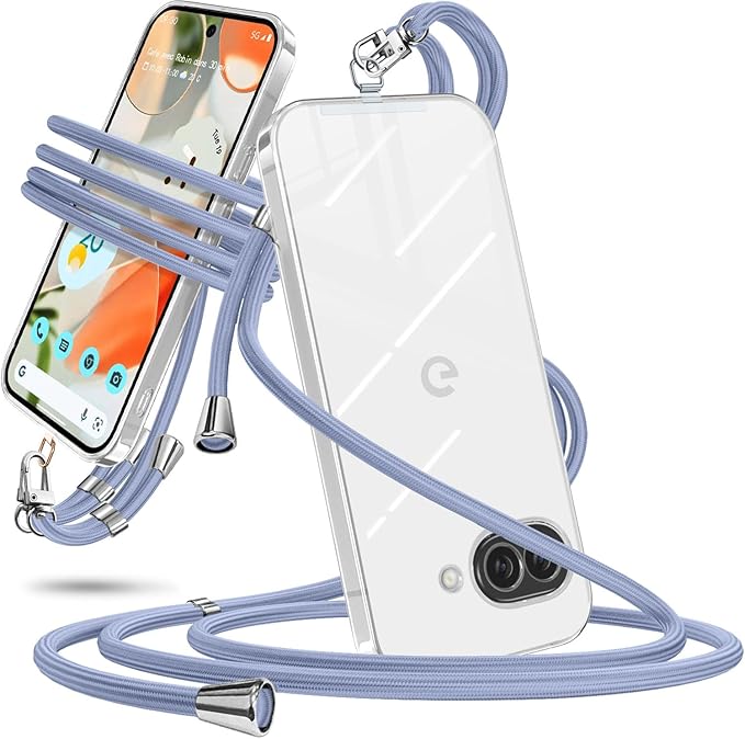 Google Pixel 9A ケース クリア ショルダー ピクセル9a スマホケース カバー 肩掛け 斜めかけ 縄掛けケース 耐衝撃 全透明 TPU 薄型 紐付き 斜めがけ 織りストラップ付き ネックストラップ 長さ調整可能 取り外し可能 落下防止 紛失防止 ワイヤレス充電対(クリア)