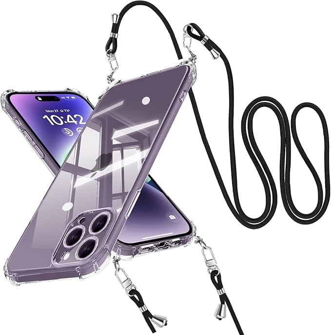 対応 iPhone 15 Pro Max 用のケース ショルダー クリア 肩掛け 斜めかけ 縄掛けカバー アイフォン15 pro max 用のケース 耐衝撃 衝撃吸収 レンズ保護 シンプル 透明 TPU シリコン ソフト 薄型 軽量 柔軟取り外し可能 取り外し可能 落下防止 スマホカバー 6.7インチ 透明 J08-07