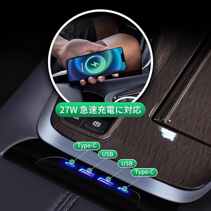 Guranko 第四世代アルファード40系専用適合 センターコンソール充電ポート拡張ドック 27W充電対応 急速充電対応 USB 2 Type-C 2