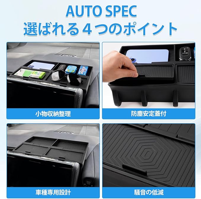 Auto Spec トヨタ アルファード ヴェルファイア 40系 専用 ダッシュボードトレイ コンソールトレイ 蓋付き 収納ボックス ダッシュボード収納 シリコン製 小物入れ 仕切り設計 水洗い可能 車種専用設計 アクセサリー カー用品 内装 パーツ 車内空間活用 取り付け簡単