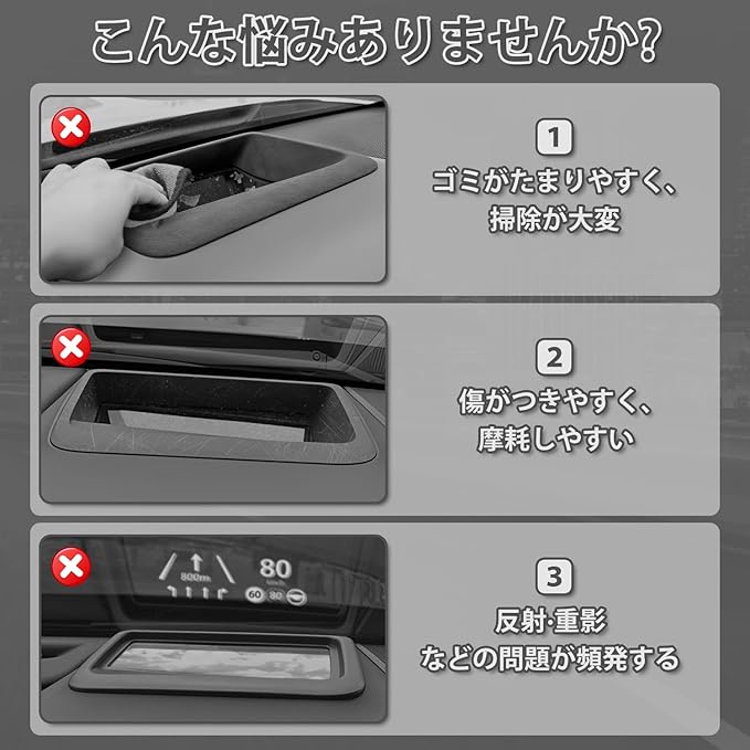 1.【適合車種】:アルファード ヴェルファイア 40系(※HUD装着車専用)。型式:AGH45W AGH40W AAHH40W AAHH45W。年式:2023年6月~現行。【セット内容】:HUD保護カバー 1PCS。※注意:本製品は反射を完全には防げませんが、ホコリ・汚れ・傷から保護します。※天候や日光の角度によっては、フロントガラスに多少の反射が生じる可能性があります。あらかじめご了承ください。運転時の視界に影響がある場合は、すぐに取り外してください。※ご購入前に、ご愛車の年式、モデルをご確認ください。