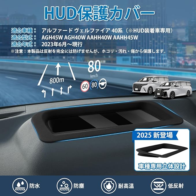 【2025新登場】Mixsuper アルファード 40系 HUD保護カバー HUDカバー ヴェルファイア 40系 ヘッドアップディスプレイカバー 2023年6月~現行 二重像対策 反射光軽減 高透過率 防塵 防水 alphard vellfire 40 カスタムパーツ 車種専用設計