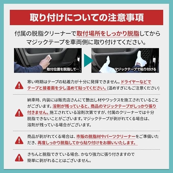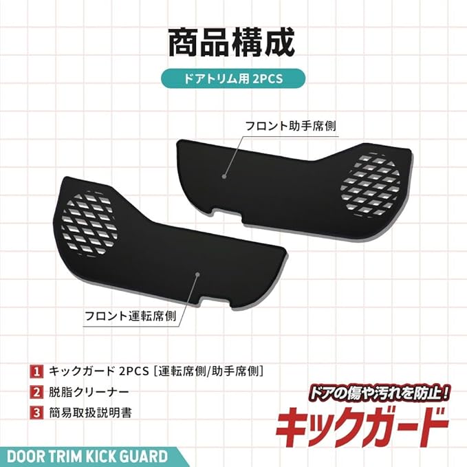 【付属品】 キックガード運転席/助手席、脱脂クリーナー、簡易取扱説明書