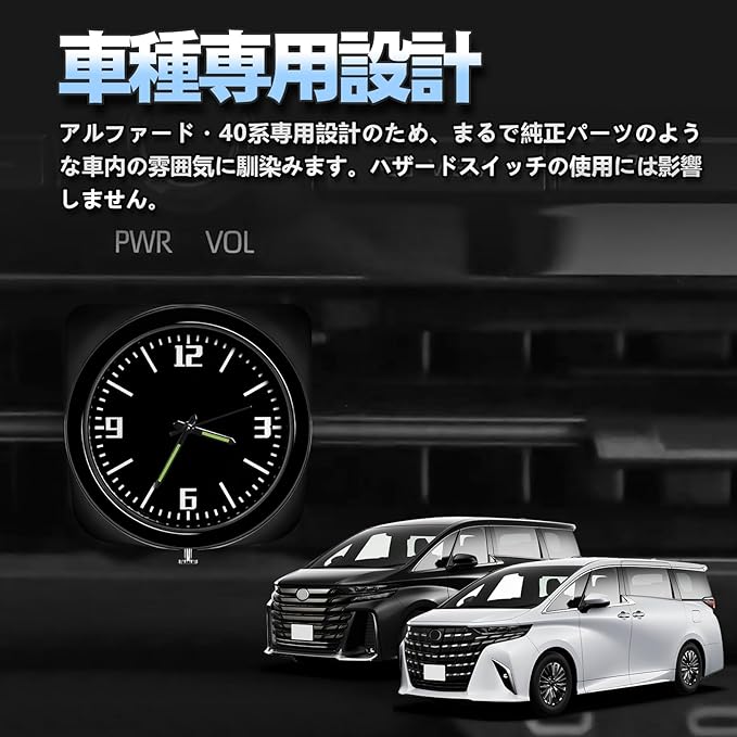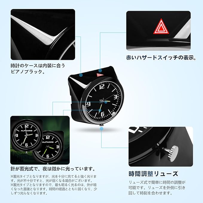 アルファード ヴェルファイア 40系 ハザードウォッチ クロック車載時計 車用クオーツ カーダッシュボードウォッチ ラウンドアナログクォーツ Alphard/Vellfireアクセサリー