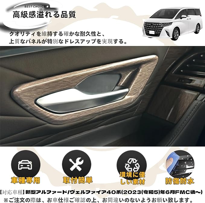 適用 新型アルファード40系 ヴェルファイア 40系 カスタム アクセサリーパーツ インナードアハンドルパネルカバーガーニッシュ 専用車種 内装グッズ 木目調ブラウン