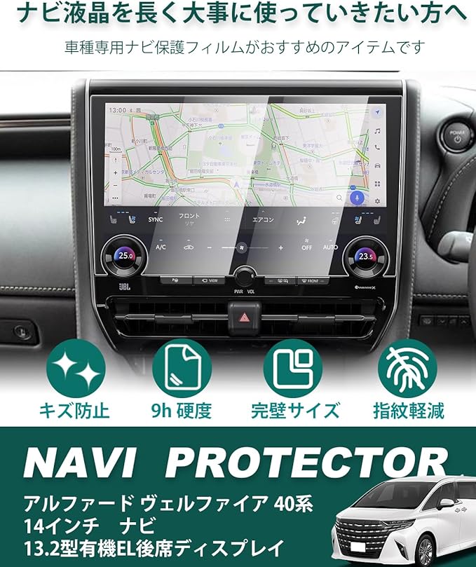 トヨタ 新型 アルファード ヴェルファイア 40系 用 【ナビ+後席モニターフィルム 2枚セット】 「全面保護」14インチ ナビ + 13.2型有機EL後席ディスプレイ V13T-R72F リアディスプレ ガラスフィルム 指紋防止 キズ防止 貼付簡単 自己吸着タイプ 気泡ゼロ 高感度タッチ 汚れ防止 耐眩光 アクセサリー カスタム パーツ