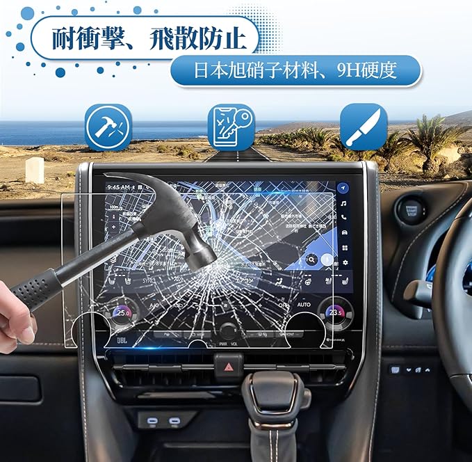 【高光透過率・9H強化ガラス】硬度9H強化ガラスフィルムを採用して作られたアルファード40系カーナビフィルムは、高硬度で割れ防止、キズ防止の特性を持っています。車種専用設計で、アルファード40系のナビにジャストフィットします。 厚さ0.25mm、99%の光透過率、ナビの鮮明さと精度を維持することができます。 2.5Dラウンドエッジ加工を採用し、エッジがスクリーンに良くフィットし、気泡の侵入を軽減すると同時に、外部からの衝撃に強く、破損を防止し、カーナビを守ります。