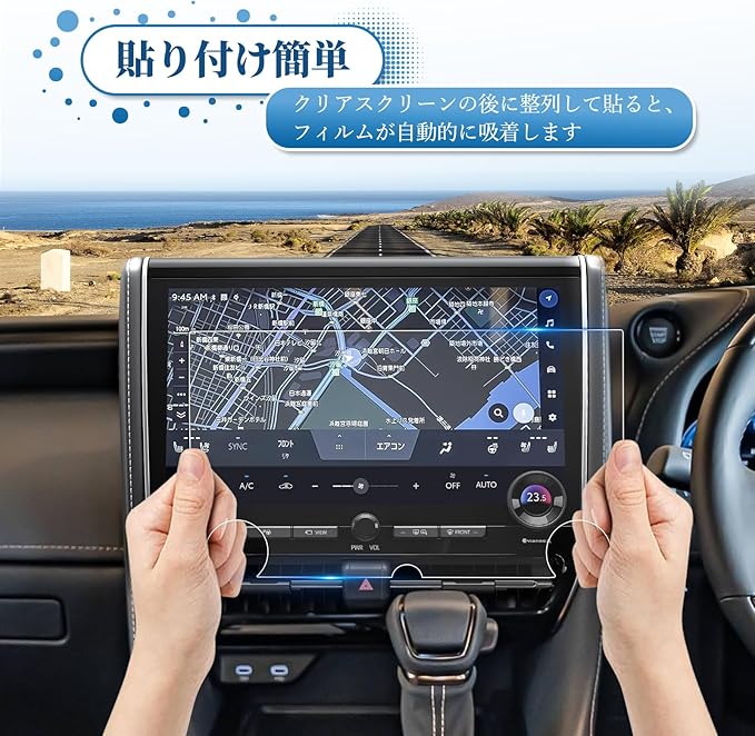 【指紋防止・カースクリーン保護】指紋防止コーティングを施し、指がフィルムに触れても指の油分が残りにくく、ヴェルファイア 40系の後席ディスプレイを保護します。 指紋・油汚れ・水汚れに強く、汗・皮脂・化粧品等が画面に付いても拭き取るだけです。 自由かつ快適に操作できます。 ほこりの多い環境では、ほこりによる液晶画面の汚染を防ぎ、スクリーンの清潔感を効果的に保護し、耐用年数を延ばします。