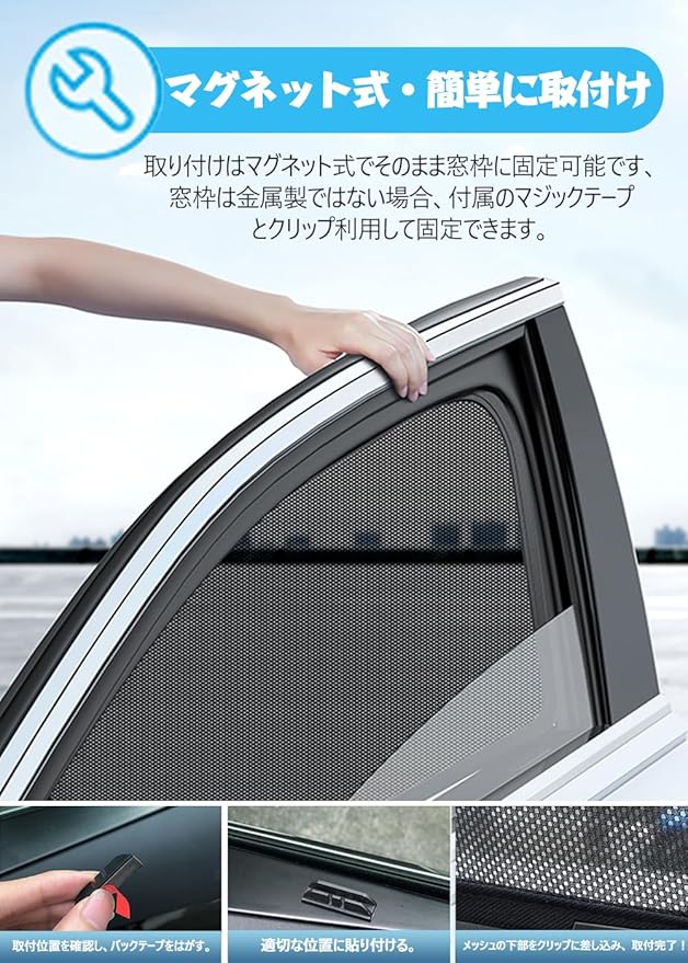 サンシェード 新型 アルファード ヴェルファイア 40系 対応 メッシュカーテン カーシェード マグネット式 遮光 換気 虫除けネット サイドバイザー トヨタ Alphard Vellfire 4代目 車種専用設計 折り畳み式 日除け アクセサリー 4枚セット (トヨタ 専用 アルファード ヴェルファイア 40系)