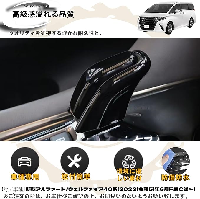 適用 新型 アルファード40系 ヴェルファイア 40系 カスタム アクセサリー パーツ シフトレバーノブパネルカバー ガーニッシュ 車種専用 室内装 用品 グッズ ピアノブラック