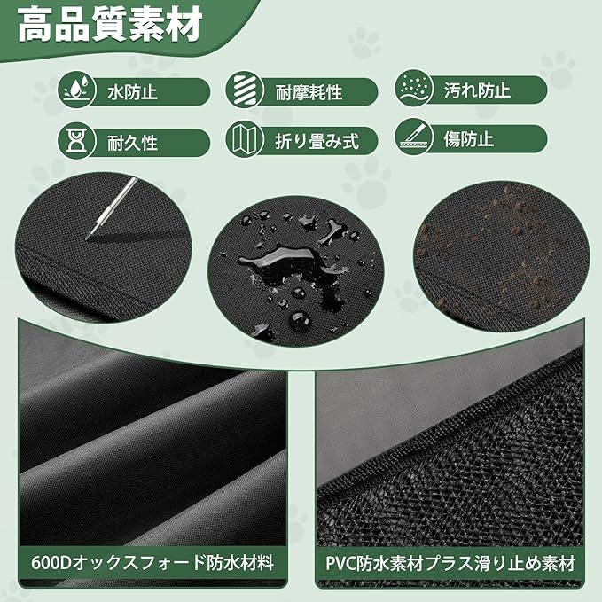 3.【汚れ・摩耗性・耐傷性】:高品質のオックスフォード素材を使用しており、耐摩耗性・耐傷性に優れています。さらに、左右の縦幅を広く設計しているため、雨や雪の日でも、ペットとのドライブ時でも、車内をしっかりと保護します。汚れた場合でも、濡れた雑巾で拭くか、取り外して水洗いするだけで簡単に清潔になります。