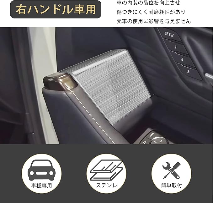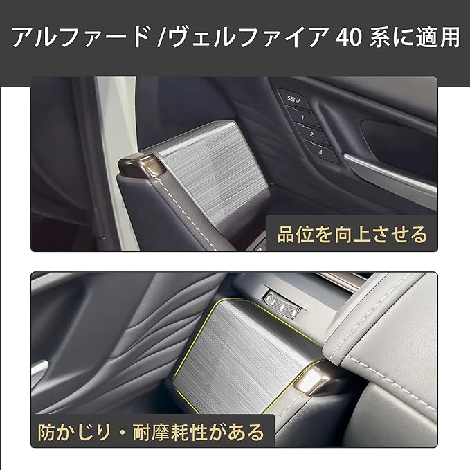 【適合車種】:この内装パネルは、アルファード/ヴェルファイア 40系の車種に完全に適合し、車内の装飾品質を向上させることができます。商品は必要な位置に簡単に取り付けることができます。 【清潔とスタイル】:車内を整理しやすくなります。のを防ぎ、キズ、汚れ、水濡れを効果的に防止し、快適な車内環境を保つことができます。同時に、スタイリッシュなデザインで車内の内装を引き立て、高級感を演出します。 【高品質ステンレス素材】 耐食性に優れた高品質ステンレス鋼を採用。錆や腐食に強く、高い耐衝撃性を兼ね備えているため、長期間にわたって形状安定性を維持します。精密加工された取り付け部分は車体に密着し、走行時の振動による緩みやガタツキが発生しません。 【簡単取付】:取り付け方法は簡単で、誰でも容易に操作できます。特別な工具は必要なく、製品を取り付け部位に接続するだけで設置が完了します。 【品質保証】当社では出荷前に厳格な検査を行っておりますので、ご安心してご購入いただけます。もし何かご質問やご不明点がございましたら、直ちに対応いたします。