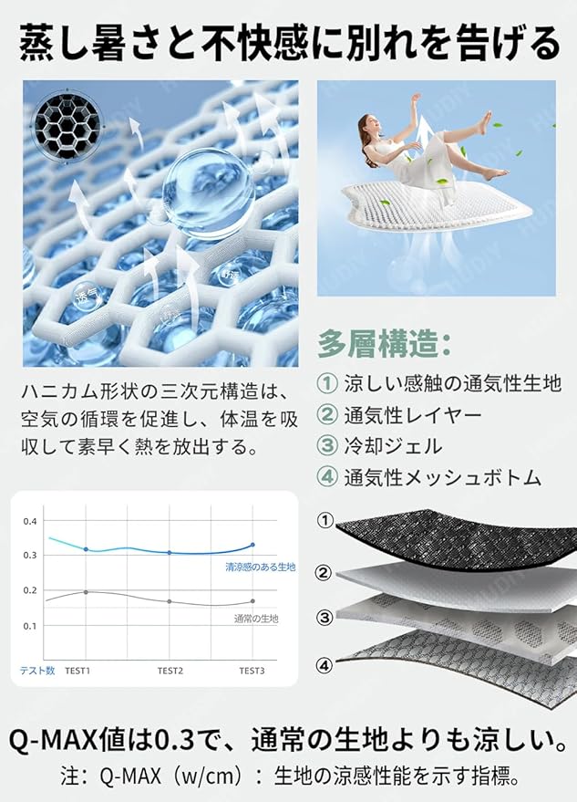 [優れた放熱性能] 表面の通気性生地と内部ハニカム形状ゲル材質は優れた放熱特性を持ち、臀部から発生する熱を迅速に追い払うことができ、暑い夏でもクッション表面を乾燥させ、蒸し暑さと湿気を避け、運転過程を常にさわやかで快適に保つことができる。