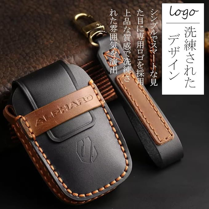 LEXLEY 新型キーケース トヨタ ALPHARD 30系 40系 専用 本革 6ボタン レザー キーカバー キーホルダー スマートキー ALPHARDロゴ付 キズ防止 カスタム ブラック