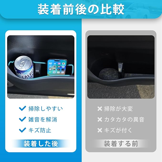 3.【車種専用設計】:車種専用に設計、隙間なくピッタリ設置できる。ドアポケット内部の質感に近似、後付け感のない自然なフィッティング!