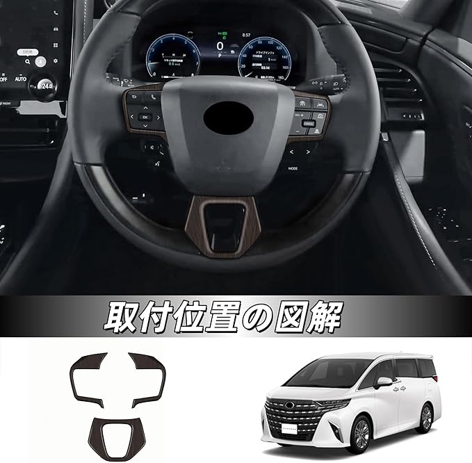 新型アルファード/ヴェルファイア 40系に対応 アクセサリー 専用 グッズ 内装パーツ ステアリングパネル カバー ガーニッシュ 保護カバー インテリアパネル(艶消し木目調)