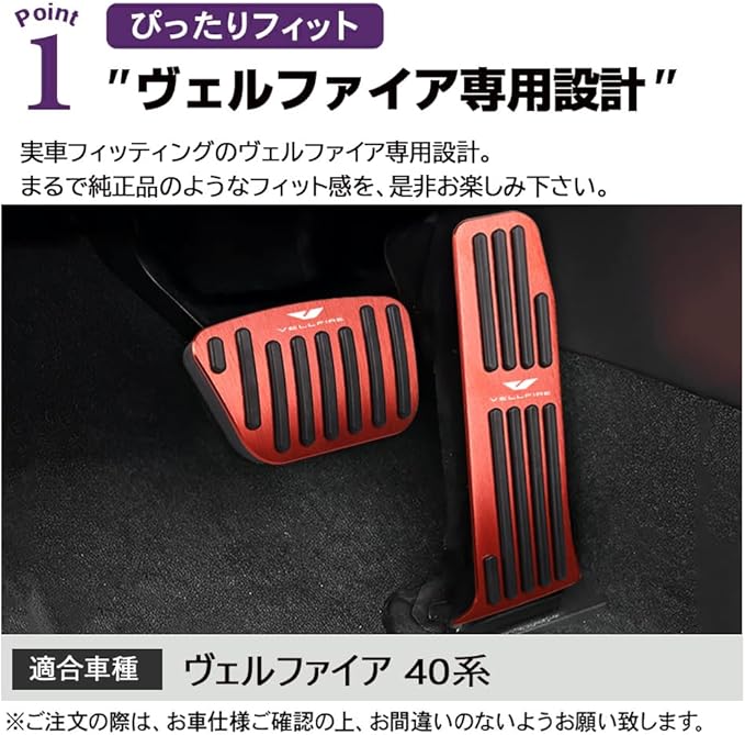 ヴェルファイア 40系 専用設計 ペダルカバー ロゴ付き アルミカバー アクセル ブレーキペダルカバー 2個セット(ブラック)