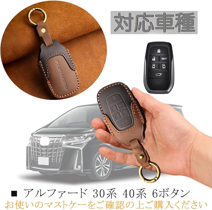 適合トヨタ アルファード 30系 40系 スマートキーケース キーホルダー キーカバー レザー製 ロゴ付き 軽い ドレスアップ 汚れと擦れ傷防止 耐衝撃 落下防止 6ボタン(ブラック)