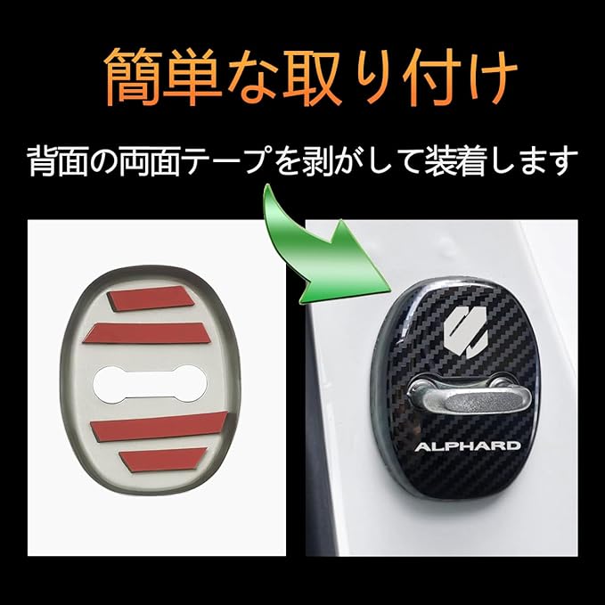 トヨタ に適用 新型アルファード(ALPHARD) AGH40W AGH45W 40系(2023年6月~) に適合 ドアストライカーカバー専用 ドアロックカバー ステンレスカバー 簡単取り付け メタリック 4個セット