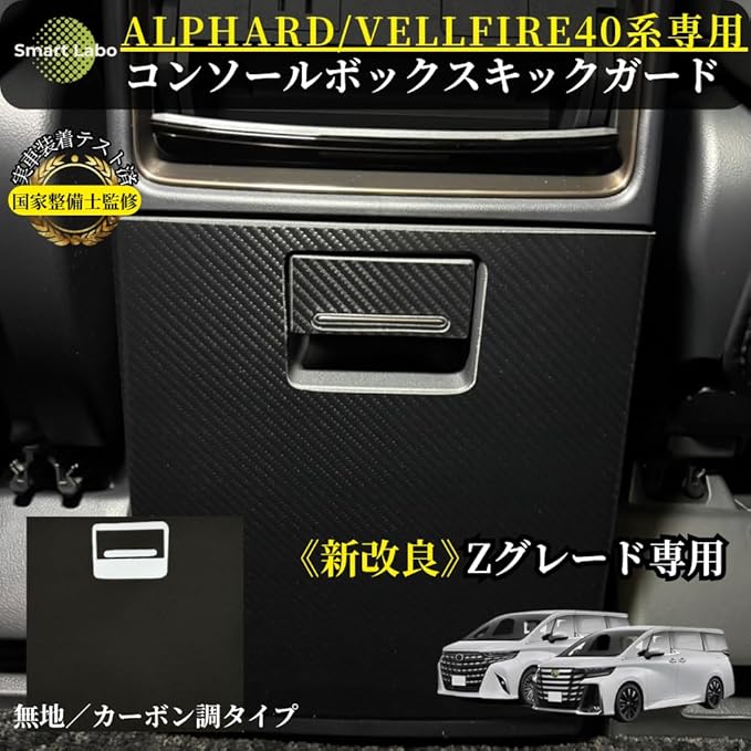 【新改良・国家整備士監修・安心トータルサポート】 アルファード40系/ヴェルファイア40系 (Zグレード/Zプレミア) センターコンソール キックガード PL保険加入済 動画解説 フルカバー 取っ手部分対応 ブラック無地 シワゼロ梱包 汚れ防止 傷防止 実車装着テスト済(適格請求書対応)