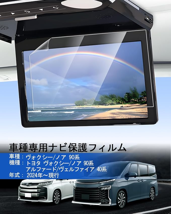 【対応車種】トヨタ 新型 ヴォクシー 90系 グレード:S-Z/S-G;ノア 90系 グレード:S-Z/S-G/Z/G/X;トヨタ 新型 アルファード 40系 Z ;ヴェルファイア 40系 Z Premier 13.2型有機EL後席ディスプレ V13T-R72F 【パッケージ内容】:ARフィルム 2枚、気泡抜きヘラ、クリーニングキット(拭き取り紙、クリーニングクロス、ホコリ除去シール)