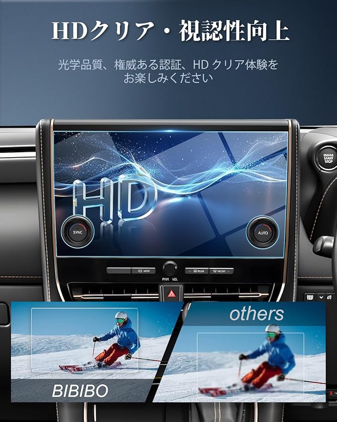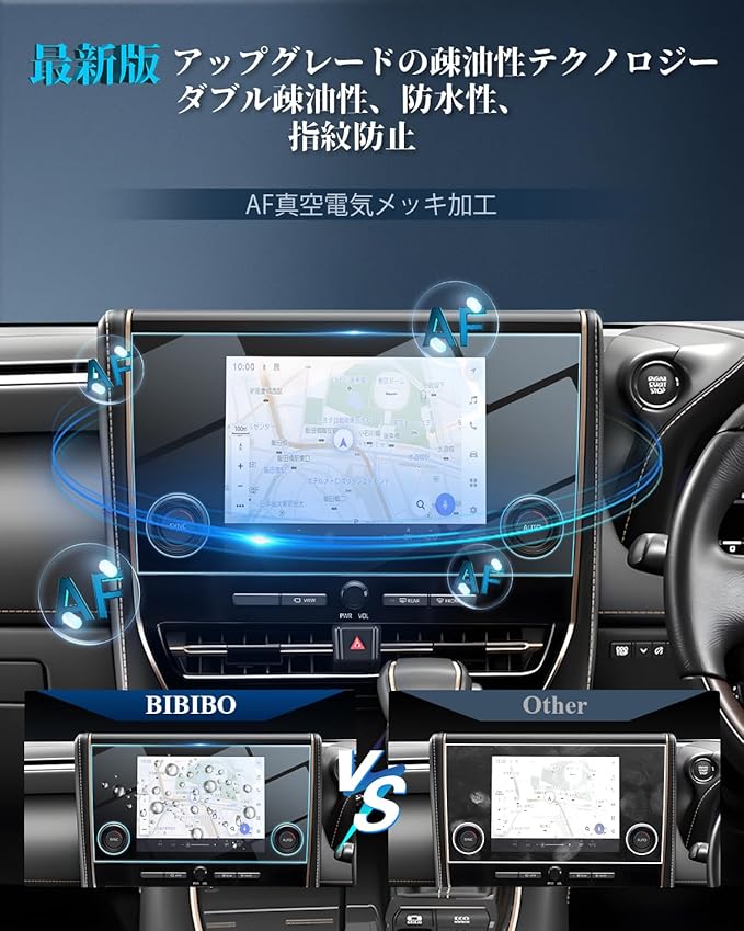 【カンタンに貼れる自動吸着フィルム】BIBIBOの新型アルファードフィルムは、自動吸着で簡単にナビ画面に貼れます。付属の布とダスティングペーパーで準備を整え、フィルムをカバーするだけでOK。無駄な気泡もなく、ツルツルとした仕上がりに。さらに、保護もバッチリ!