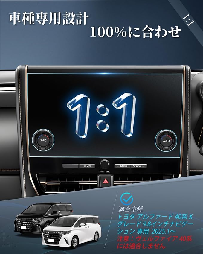 BIBIBO 2025 トヨタ アルファード40系 Xグレード専用 9.8インチナビ フィルム 40アルファード ガラス カーナビ 保護フィルム 汚れ防止 防気泡 高感度タッチ キズ防止 9H硬度 指紋防止 貼付簡単 アルファード40系 アクセサリー