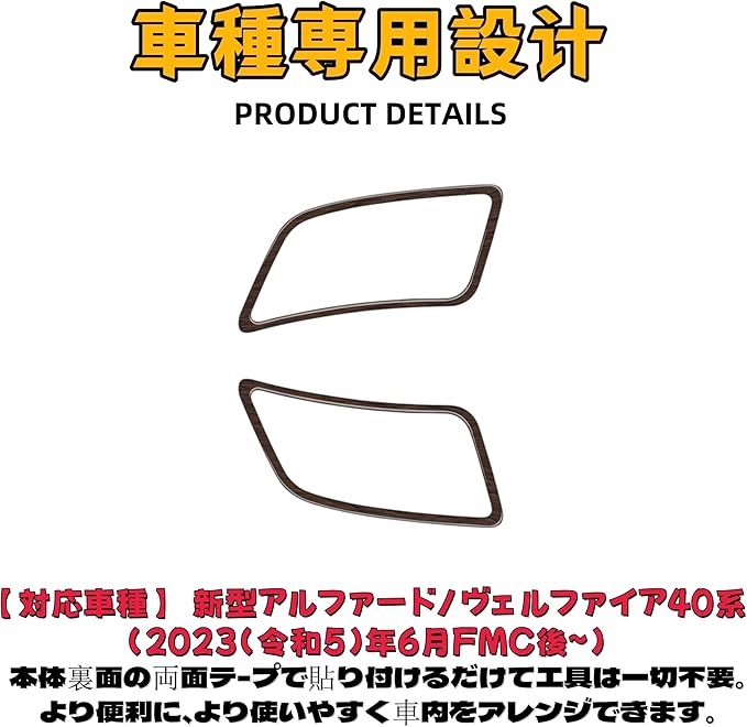 新型 アルファード ヴェルファイア 40系に対応 専用 コンソール左右吹き出し口フレームパネルカバー カスタムパーツ アクセサリー 室内装グッズ (左右吹き出し口パネルフレーム 木目調)