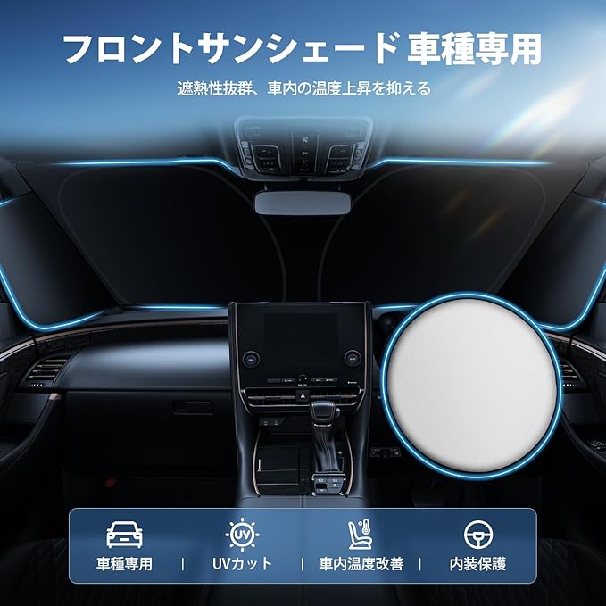 【遮光性良い】:遮光性はアルミ加工されているためバッチリ、しっかり太陽光から車内を守ってくれるため、見た目だけじゃなく機能性もあり、夏場必須アイテム!!従来品は車種専用のデザインではなくて、窓の形にフィットしません、隙間のあるし、プライバシーを守りません、装着した後、倒れる場合もあります。本社の製品は車種専用デザインで、隙間はありませんし、装着完了した後、倒れません。