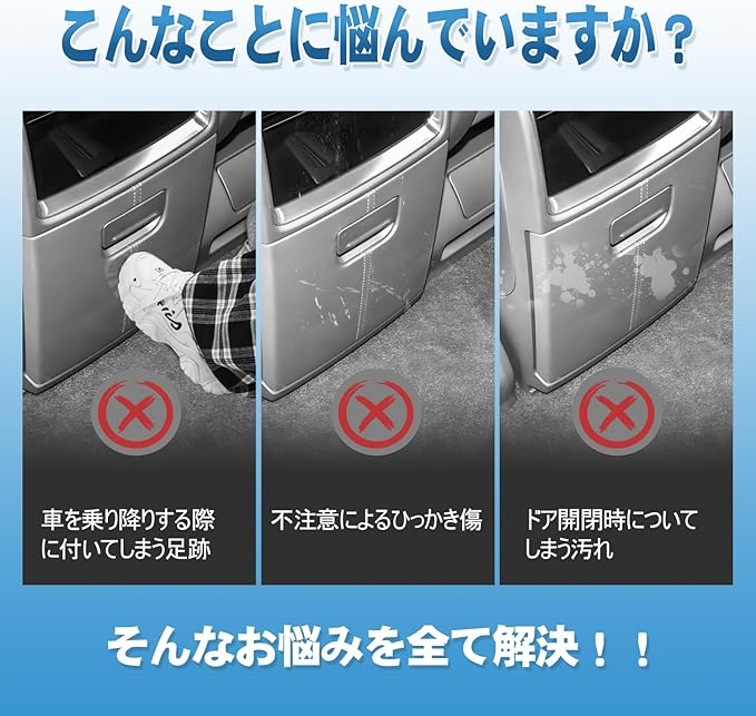 【完全専用設計・取付簡単】実車に何度もフィッテイング確認を実施し、車体イメージを壊さず、丁寧に寸法をとった完全車種専用設計です。高級車にふさわしいフィット感を実現します。室内インテリアにもピッタリなキックガードです。