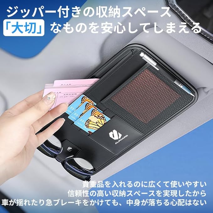 アルファード 専用 車 バイザー サンバイザー 収納 大容量 サングラスホルダー ALPHARD 新型 アルファード 30系 40系 20系 に適用 カスタム 内装 パーツ カスタム カー用品 便利グッズ 車内 収納 スリム型 サンバイザーポケット サングラスホルダー カードホルダー 安全運転 カードホルダー 小物入れ アクセサリー (ブラック 1個)