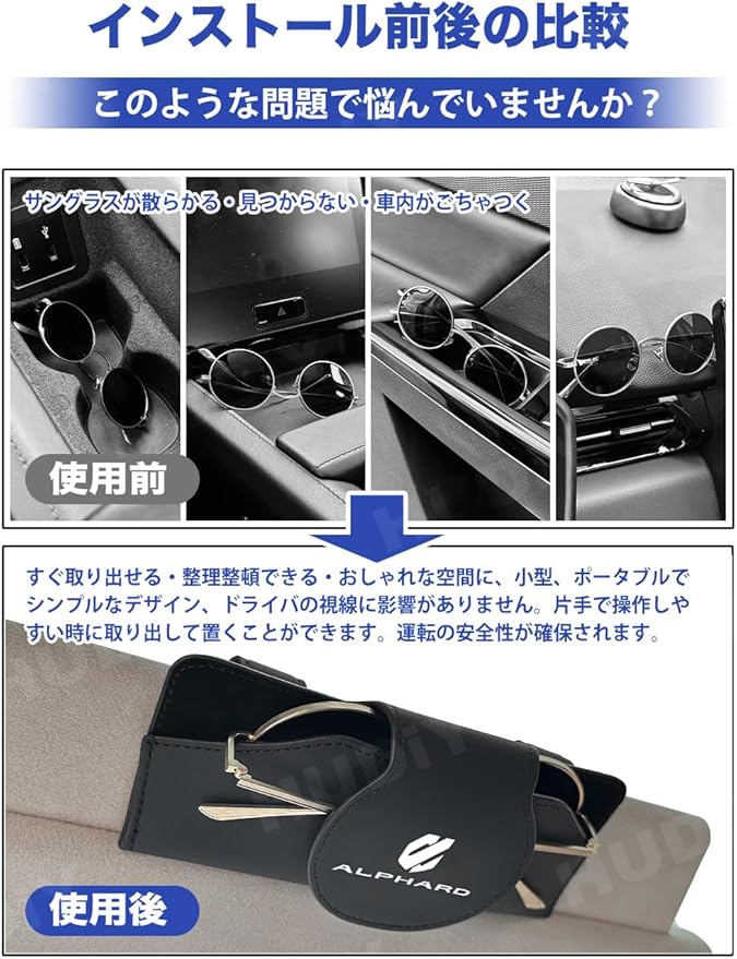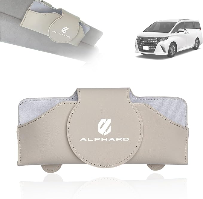 [HUDIY] フーディ 車載用 サングラスケース 専用ロゴ サングラスホルダー 遮光板取り付け型 磁気フタ PUレザー メガネケース 車内収納 運転中簡単アクセス