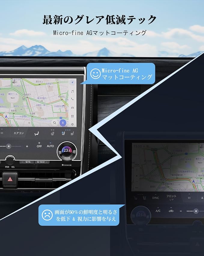 【アンチグレーコーティングによる優れた反射防止】高度なアンチグレー技術により、反射や映り込みを効果的に軽減します。昼夜を問わず快適な視認性を確保し、ドライブ中の安全性を高めます。