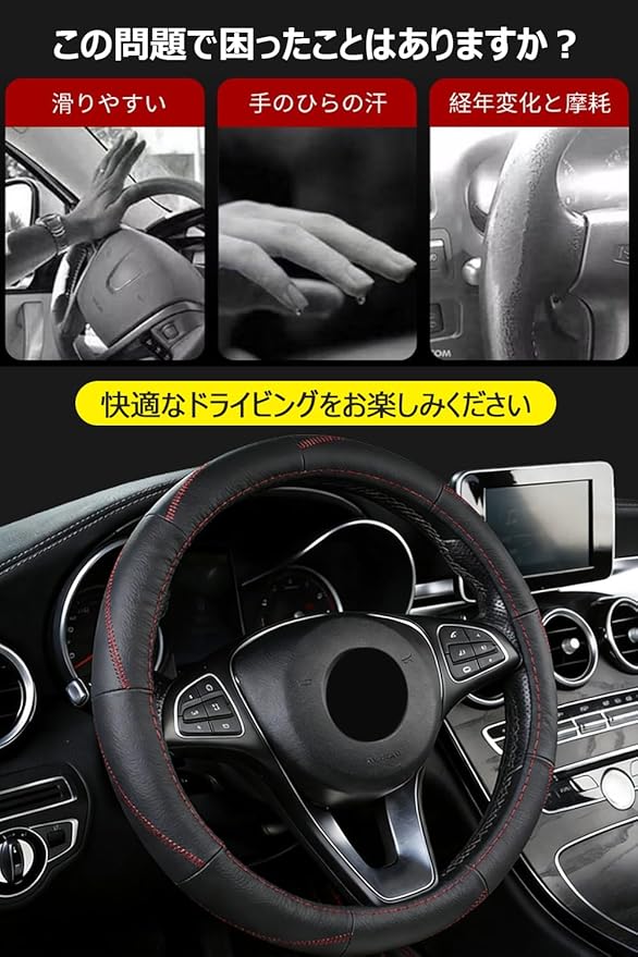 【滑り止め】このステアリングカバー はメッシュの滑り止め付きインナーリムは、ステアリングホイールにぴったりとフィットし、ハンドルカバーのオフセット防止。手触りとグリップが向上。また、滑り止め機能や優れた操作感により、長時間の運転でも疲れることなく安全に操作することができる。