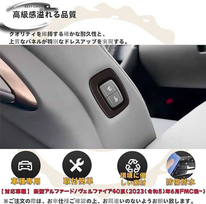 適用 新型アルファード40系 ヴェルファイア 40系 カスタム アクセサリーパーツ パワーシートスイッチパネル 艶消木目調ブラウン