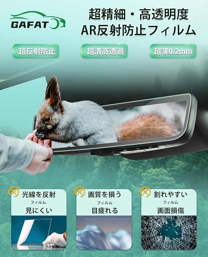 【GAFAT AR低反射】トヨタ アルファード/ヴェルファイア 40系 R5~ 新型 デジタルカメラ アルファード フィルム インテリジェントルームミラー用 車用液晶保護フィルム 東レ光学 AR反射防止 ヴェルファイア 40系 斜め反射ナノフィルム 傷防止 汚れ防止 指紋防止 防気泡 高透過率(ARコーティング・2枚セット)