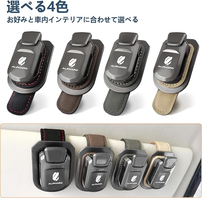 【2025年新進化 アルファード専用】 サングラスホルダー メガネクリップ サングラスクリップ レザー製 おしゃれ 車内収納 サングラス 眼鏡 サンバイザー取付簡単 傷防止 落下防止 Alphard用 ブラック