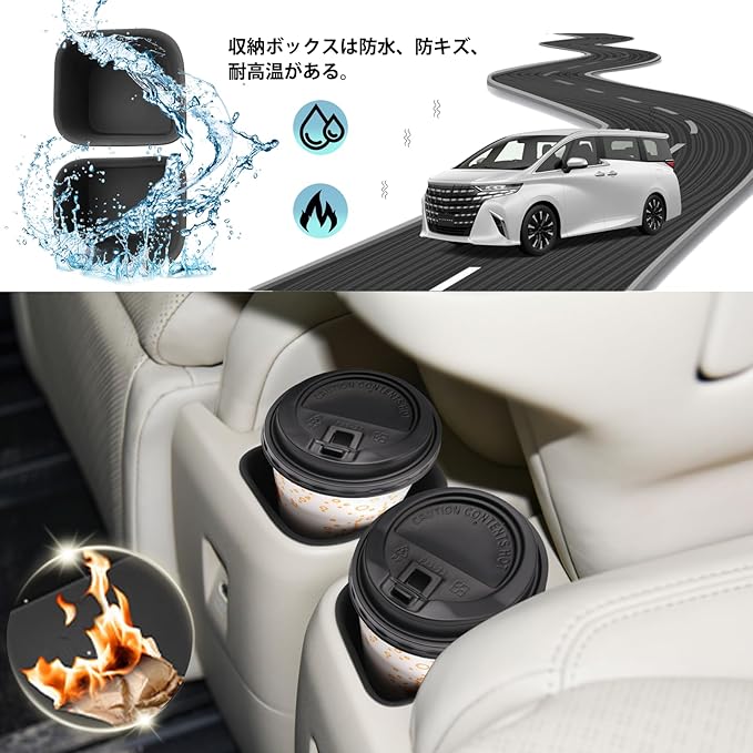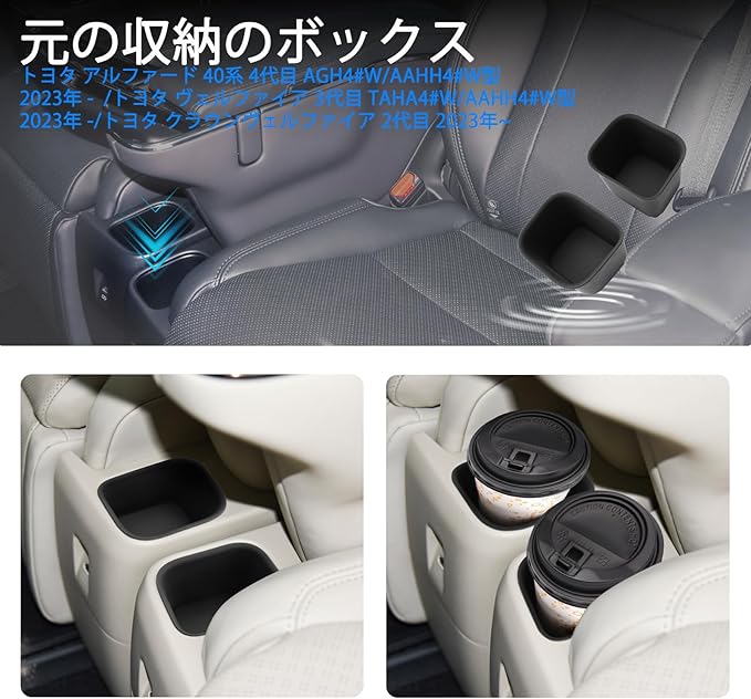 SHAOHAO 2個入りトヨタ アルファード 40系 ヴェルファイア 40系 専用 中列席 収納ボックス ドリンクホルダー カップホルダー シリコーン材質 滑り止め ABS素材 滑り止め 収納便利 取付簡単 小物入れ アルファード 40系 ヴェルファイア 40系アクセサリー 車用品