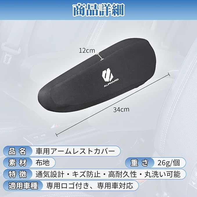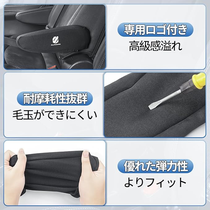 アルファード アームレストカバー 車 フルカバー型 全面保護 キズ防止 アルファード 20系 30系 40系 カー 肘掛けカバー 良い通気性 肌に優しい アームレスト 耐摩耗 防汚 肘置き 滑り止め 丸洗い可能(アルファード,2個)