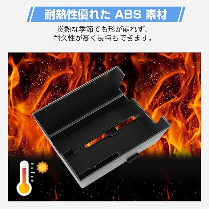 【耐久性に優れたABS素材】本体には高品質ABS樹脂を採用。防塵・防キズ設計で、長期間使用しても劣化しにくく、日常使いに最適。内部は滑り止め加工が施され、小物が動いた際のカタカタ音を軽減し、より静かな車内空間を保ちます。
