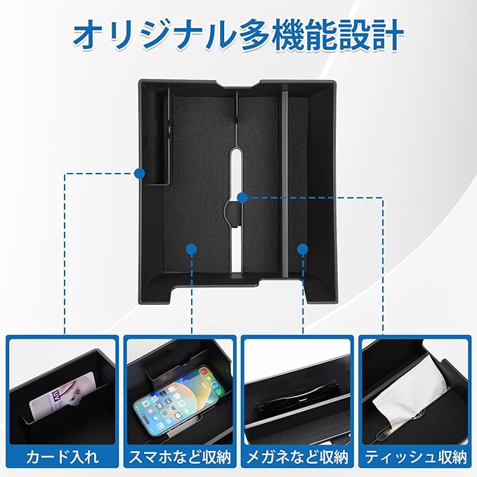 3.【プロ仕様の仕分け収納】:深かったセンターコンソールが2段構造になり、しかも、メガネ・コイン・カードを完全収納!車内散らかり防止、スッキリと整理整頓し、車内空間をキレーに!