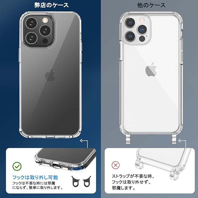 Handodo iPhone 15 Pro Max用ケース スマホケース アイフォン15 Pro Max用カバー ストラップ2種付き 取り外し可能なフック 調節可能 解体が容易 首掛け/肩掛け/斜め掛け 紐付き 高精細HD透明PC + 軽量 シリコン TPU 耐衝撃 傷防止 全面保護対応 アイフォン15 Pro Maxケース