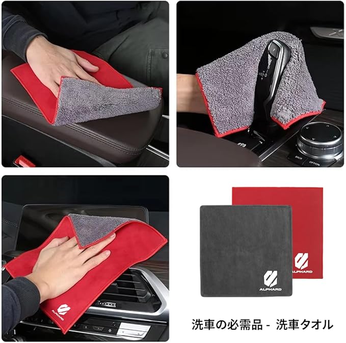 【洗車グッズ・タオル 2個】タオルサイズ:30x30cm レッドとグレー。両面異なる生地で様々な用途に使えるタオルは洗車の必需品です。