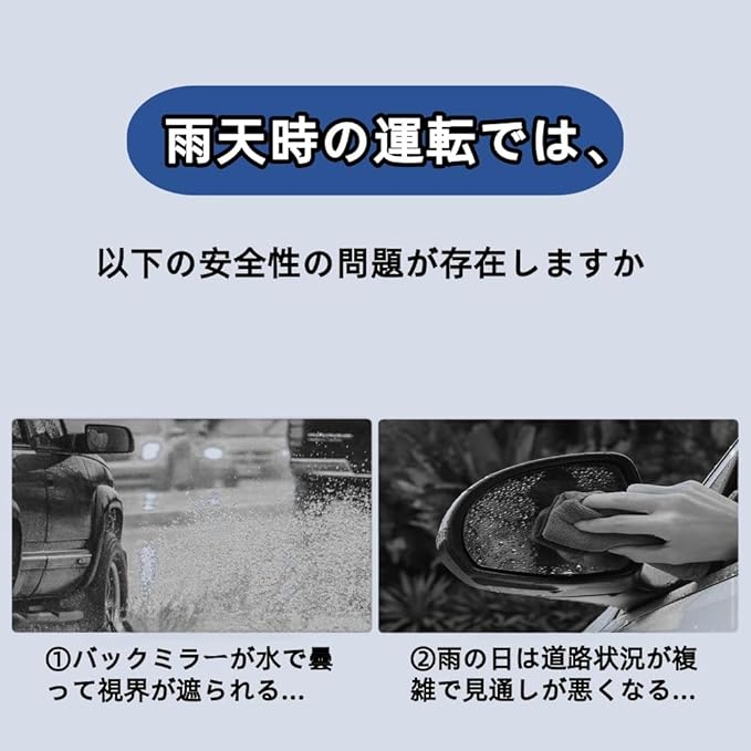 【全面的な保護】サイドミラーガードを使用すると、雨が降るのはもちろん、サイドミラーをキレイな状態に保ちでき、雨の雫を弾かなく、水滴が付いたままの状態にならないようにします。晴れの時でも埃がたまらない機能を持ちます。安全・安心に運転できます。その上、ご愛車に様々なスクラッチと傷から守り、バックミラーをいつまでもクリアに保つことができ、より安全な運転環境をもたらします。